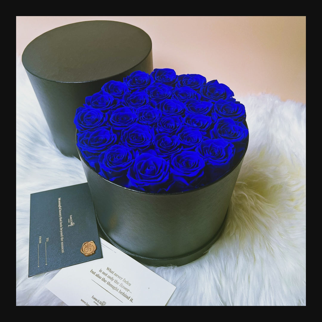 Preserved Roses Box – Round – Blue – 26 Roses