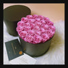A refined 26 preserved roses arrangement presented in a structured luxury gift box with a rich leather-textured finish, offering a timeless and elevated presence.