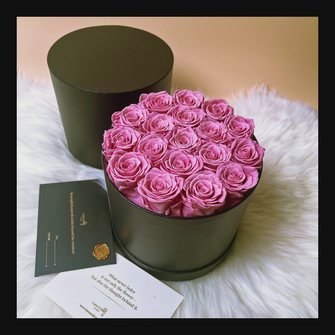 Preserved Roses Box – Round – Pink – 18 Roses
