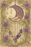 Set under a moon-shaped frame, it incorporates healing agate stones known for their calming and balancing properties.
